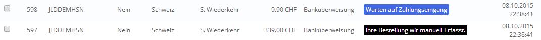 Ikarus17 Posted October 9, 2015 Share Posted October 9, 2015 Hallo Zusammen Nach einem Server wechsel (es ist mir erst danach aufgefallen zuvor hatte ich das Problem nicht) mach mein Prestashop 1.6.1.0 Probleme. Bestellt ein Kunde Artikel welche an Lager sind & Welche die nicht Lager sind Macht der Shop 2 Bestellungen Daraus. Haben Beide Bestellungen die Gleiche Bestellnummer jedoch nicht die Gleiche ID. Wie kann ich dieses Problem Rückgängig machen? Danke für die Hilfe Link to comment Share on other sites More sharing options...