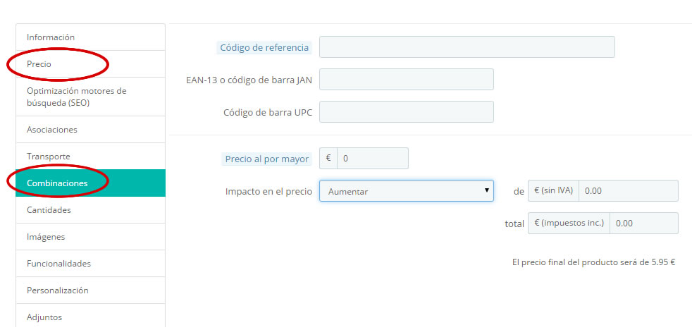 DanielMC Posted October 10, 2015 Author Share Posted October 10, 2015 ¿Has comprobado que no hayas puesto dos precios en el mismo artículo? Ten en cuenta que si el artículo tiene combinaciones, no es necesario que pongas el precio en el apartado "precio", ya que en su respectiva combinación podrás indicarle el precio que quieres y marcar "impacto en el precio" De lo contrario, te sumará los dos precios. Te adjunto imagen para que lo veas más claro. Espero haberte sido de ayuda. Gracias por tu comentario. Había pensado que podía ser eso pero comprobé que muchos artículos de la tienda no tienen combinaciones y pasa igualmente eso. Debe ser algo del IVA, transportista, impuestos, o simplemente un bug. ¿Alguna idea más? Link to comment Share on other sites More sharing options...