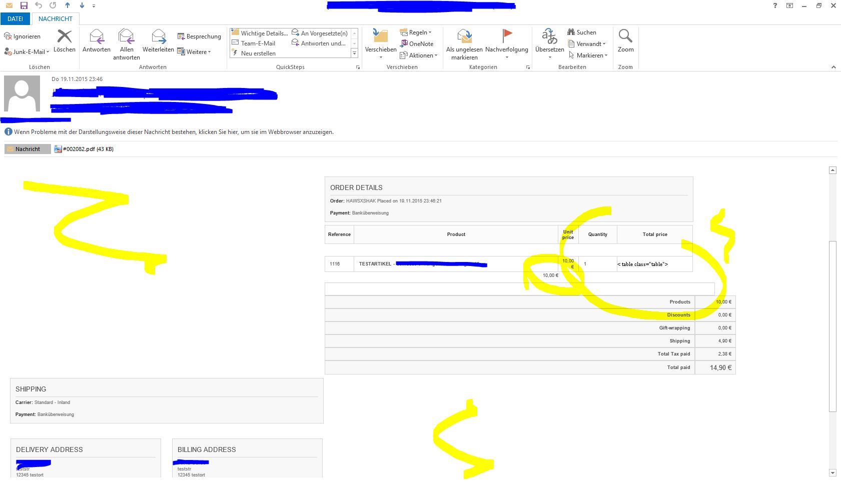 tkv Posted November 19, 2015 Share Posted November 19, 2015 (edited) Hello maconl, I solved the Problem temporarly by download the oder_conf.html from this Post and translate it compleatly: Hi Milky attached a good working order_conf.html This work since yesterday, now it doesn´t work anymore. I use Multishop. With the default Temlate it works. I use php for my Mails. This is very strange, have no body else this problem? Edited November 19, 2015 by tkv (see edit history) Link to comment Share on other sites More sharing options...
