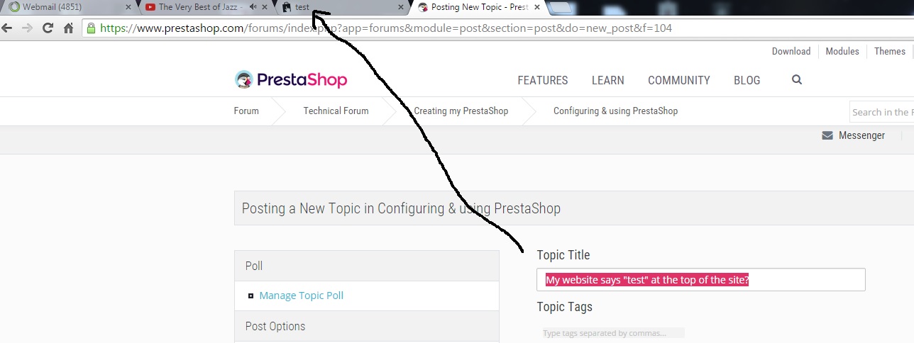 niddo Posted October 11, 2015 Share Posted October 11, 2015 Hey Presta My website says "test" at the top of the site? I just want it to say thewebsitename.com instead. How do i change this? thanks Link to comment Share on other sites More sharing options...