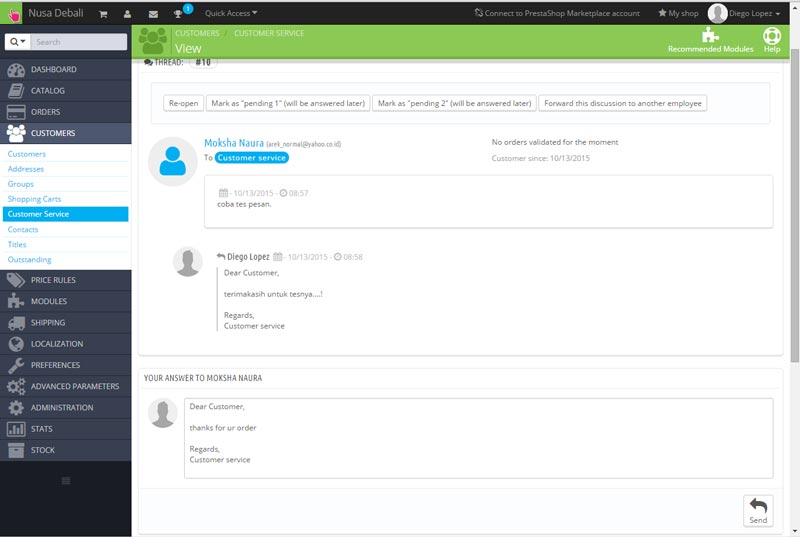 Nusasurfwear Posted October 13, 2015 Share Posted October 13, 2015 I need help, when customers send mail and my reply of prestashop, email replies are not sent, is there a solution to this hotel.I problems using prestashop 1.6.0.14 Link to comment Share on other sites More sharing options...