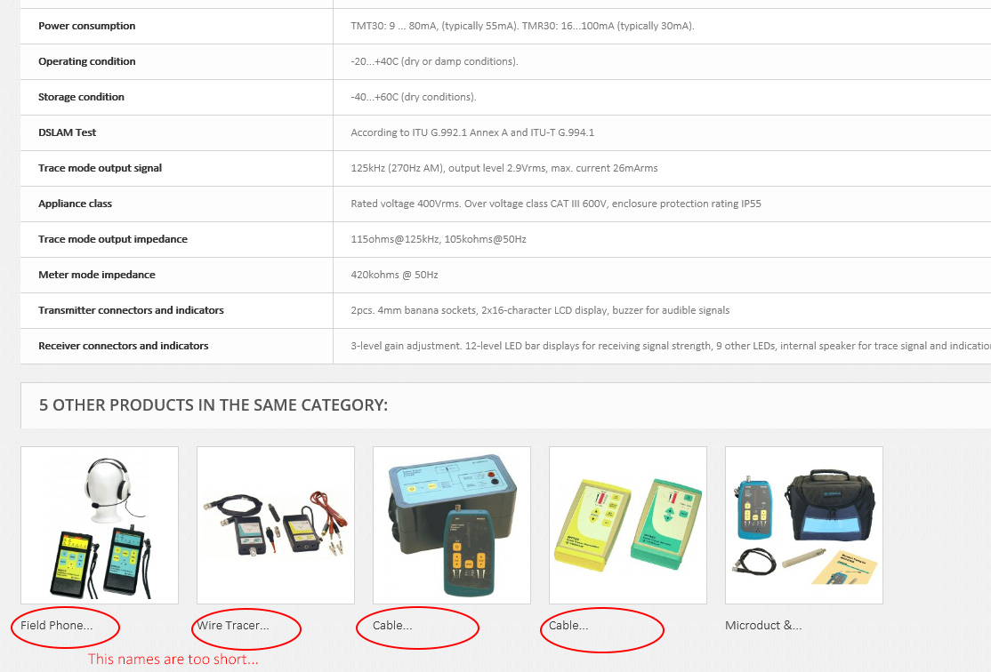 So... we have a product description page. On the buttom of page we can see other products in the same categories. But the names of these other products are too short...