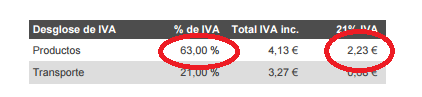 63% es 3 veces 21%. ¿Qué puede estar mal con la regla fiscal o el producto en sí? ¿Aparece este error para todos los productos?