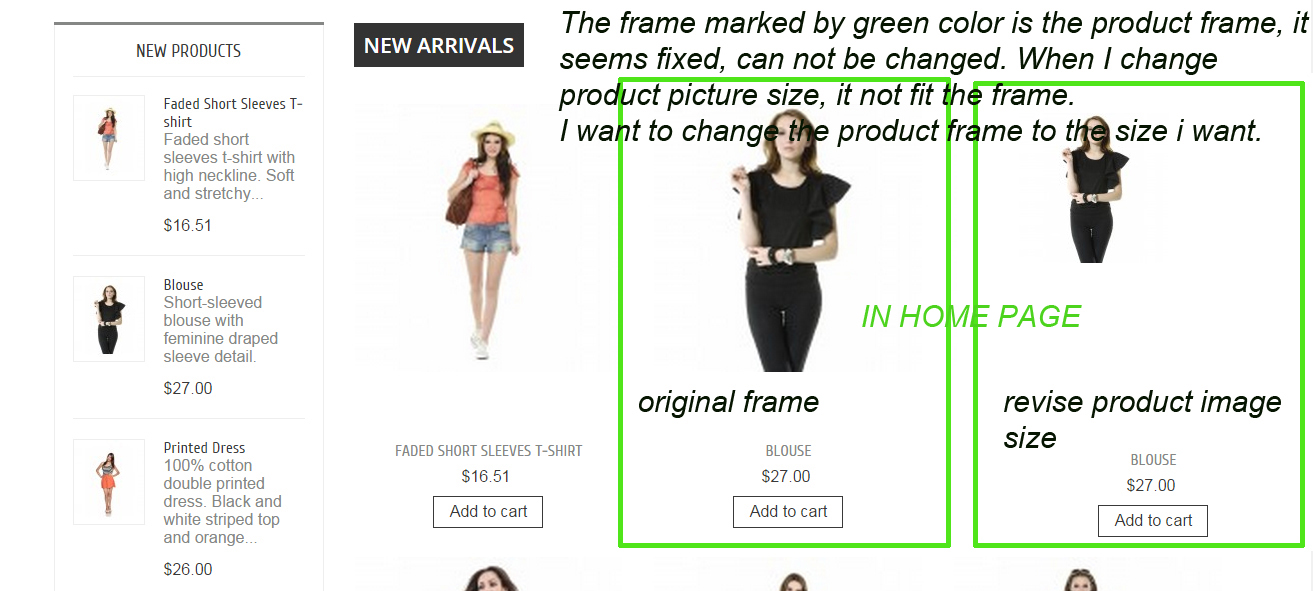 vyvy Posted October 19, 2015 Share Posted October 19, 2015 Hi All, I am a newer for prestashop. Before I use joomla virtuemart. I am creating my prestashop ecommerce web now. I meet several problem, here is the first one. How can I change product image display frame size in front page and product detail page Attached you can find the picture to make my problem clear. I know hot to change product image size, but when image size is changed, the product image frame is not changed accordingly. It is always a big rectangle, which is too big for me. When I was using virtuemart, the product frame in front page is changed according product image size. How can I make it happen? Thanks very much! Link to comment Share on other sites More sharing options...