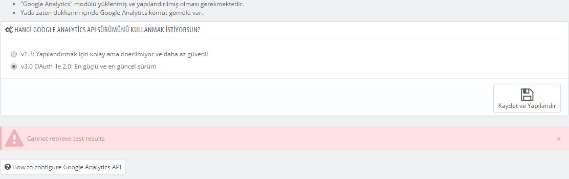 GOOGLE ANALYTİCS API 1.6.1.1 çalışmıyor