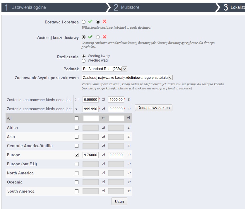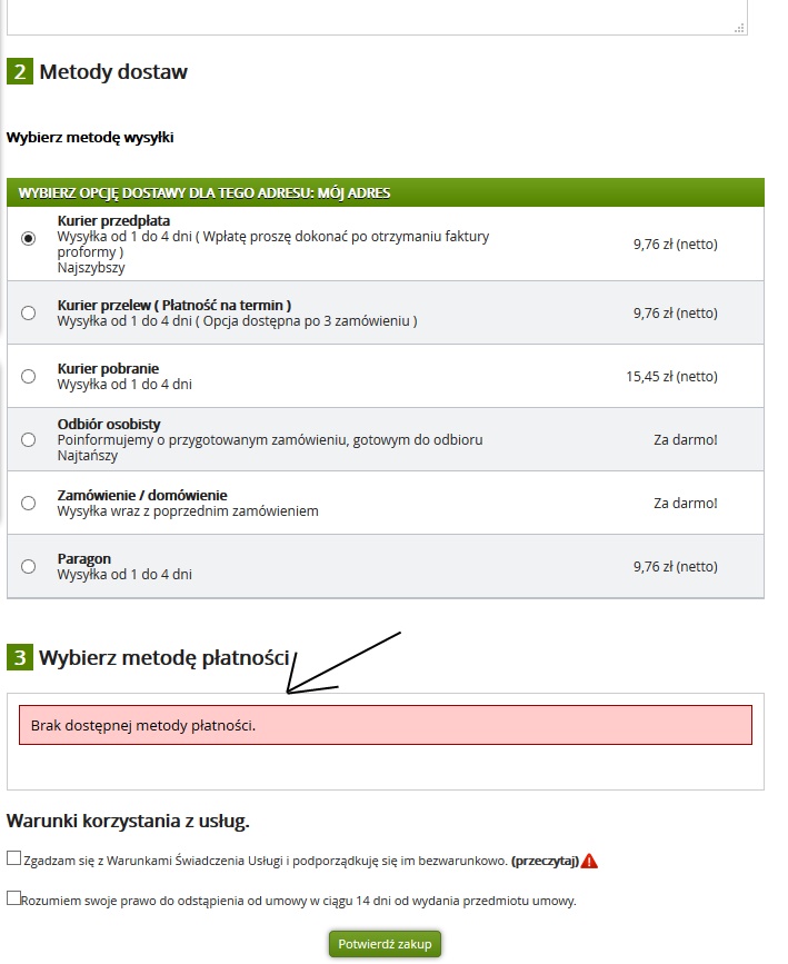 Zapisałem i teraz brak metody płatności :( usunełem tamten zakres cen przesyłek i zapisałem ale dalej brak.