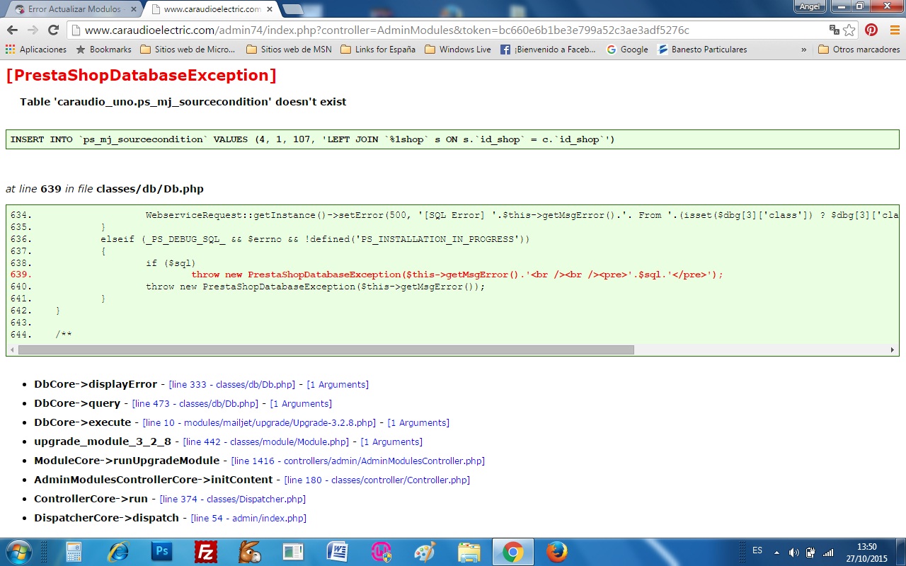 caraudioelectric Posted October 27, 2015 Share Posted October 27, 2015 Hola amigos, Revisando cosas en el back office , me he ido a la pestaña de módulos y he visto que habían 5 ó 6 para actualizar , de he dado a actualizar todo y me sale un error el cual no me deja volver a abrir la pes taña de módulos.No tengo ni idea de lo que pueda ser. Aparentemente la tienda funciona correctamente no he visto nada raro.Os dejo un pantallazo. Gracias. Link to comment Share on other sites More sharing options...