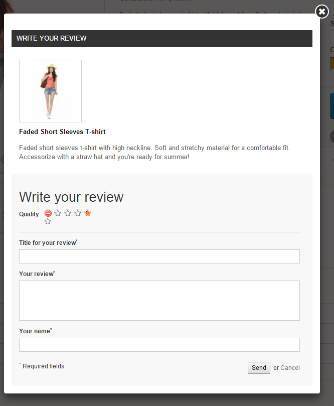 skinnybloke Posted October 28, 2015 Share Posted October 28, 2015 Hi - I am using the latest out of the box prestashop v1,6,1,1. Is there an issue with the Product Comments module when you Write a Review? I am using the latest version v v3.5.1 To me: 1. The stars do not line up 2. When you 1st open the Write a Review modal one of the stars is already lit 3. Hovering over the stars doesnt seem to work correctly 4. The cancel rating option does not work See attached image Anybody else got the same problem? Link to comment Share on other sites More sharing options...