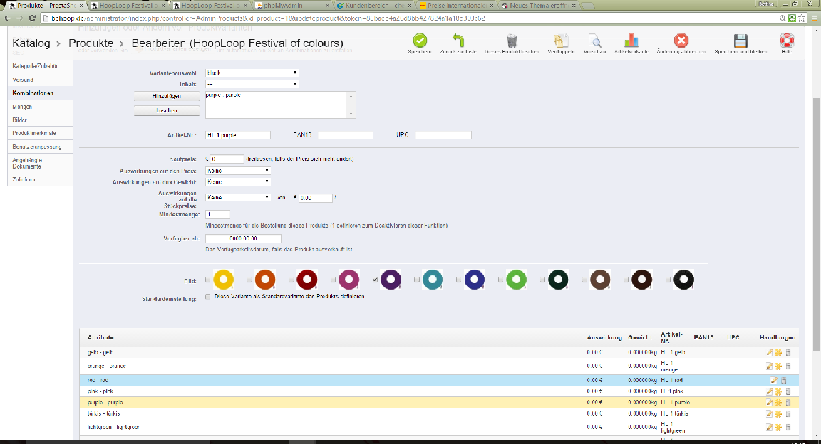 behoop Posted November 1, 2015 Share Posted November 1, 2015 Hallo und guten Tag, ich bin dabei meinen Shop mit der PS Version 1.5.3.1 neu einzurichten. Die Produktvarianten habe ich erfolgreich konfiguriert Attribute und Werte erstellt. Zusätzlich zu den Farben habe ich Texturen hinzugefügt. Im Shop werden alle Bilder angezeigt und die möglichen Farbvarianten dargestellt, s. screenshot Wähle ich nun eine Farbe aus , springt die Anzeige immer aus die Farbe Gelb ( nicht als Standardvariante hinterlegt) und lässt sich nicht mehr ändern. Was mache falsch ? Danke für Eure Hilfe Link to comment Share on other sites More sharing options...