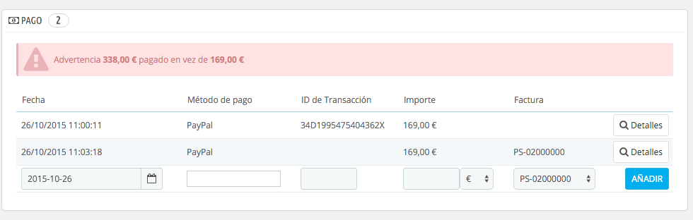 Filosso Posted November 3, 2015 Share Posted November 3, 2015 Hola. Tengo un problema desde hace un tiempo, y a pesar de haberle dado muchas vueltas no consigo solucionarlo. Tenemos Prestashop en multitienda con 3 tiendas funcionando ahora mismo. Un día sacando un resumen de facturas para la asesoría nos dimos cuenta que había facturas a 0, pero esas facturas si las abres contienen todo el detalle de los productos y el envío con sus precios, pero los totales están en cero. Solo ha pasado con algunas facturas. Ahora mismo cuando un cliente hace una compra en cualquiera de las tiendas, se generan dos facturas, 1 que es la correcta con el importe correspondiente y otra, unos segundos después con los totales a cero. Ese es uno de los problemas, pero creo que hay otro vinculado a este primero, y es que los pagos por paypal se generan duplicados, aunque el segundo (creo que el correspondiente a la factura cero) no se llega a cobrar pero si se inicia el proceso. Es decir, al cliente se le cobra de paypal el importe correcto 1 vez y se le "retiene" por unas horas el mismo importe otra vez...una cosa rarísima que ni desde paypal han sabido solucionar. Estamos desesperados. Alguna idea o pista ??? Link to comment Share on other sites More sharing options...