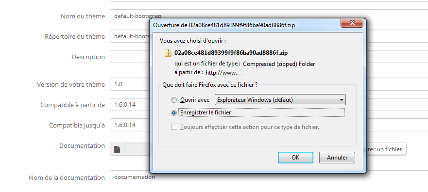 Oron Posted November 12, 2015 Share Posted November 12, 2015 Bonjour quand vous faites Exporter un thème en haut à droite vous tombez sur une page où vous pouvez ajouter ou modifier des informations puis en enregistrant vous avez le popup de tél"chargement et là vous enregistrer sur votre poste voir copie d'écran : Link to comment Share on other sites More sharing options...