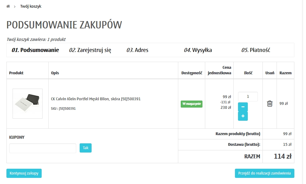 Druga sprawa to zmiana wyświetlania w koszyku rabatu w procentach a nie kwocie. Ale to już mniej istotne.