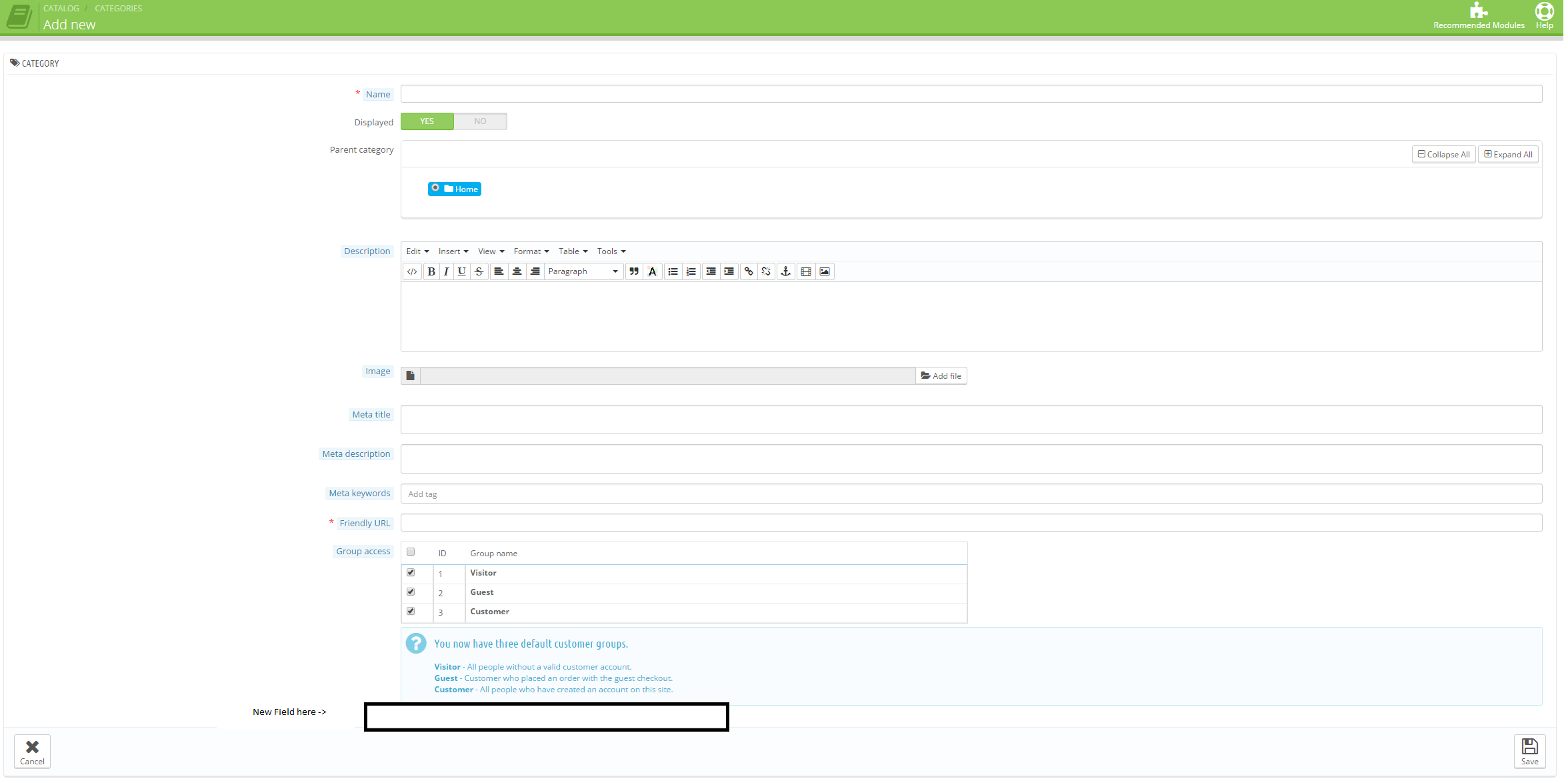 slymatt Posted November 13, 2015 Author Share Posted November 13, 2015 But isn't that overloading instead of adding to? Also i dont see a displayCategoryAdd displayCategoryUpdate Link to comment Share on other sites More sharing options...