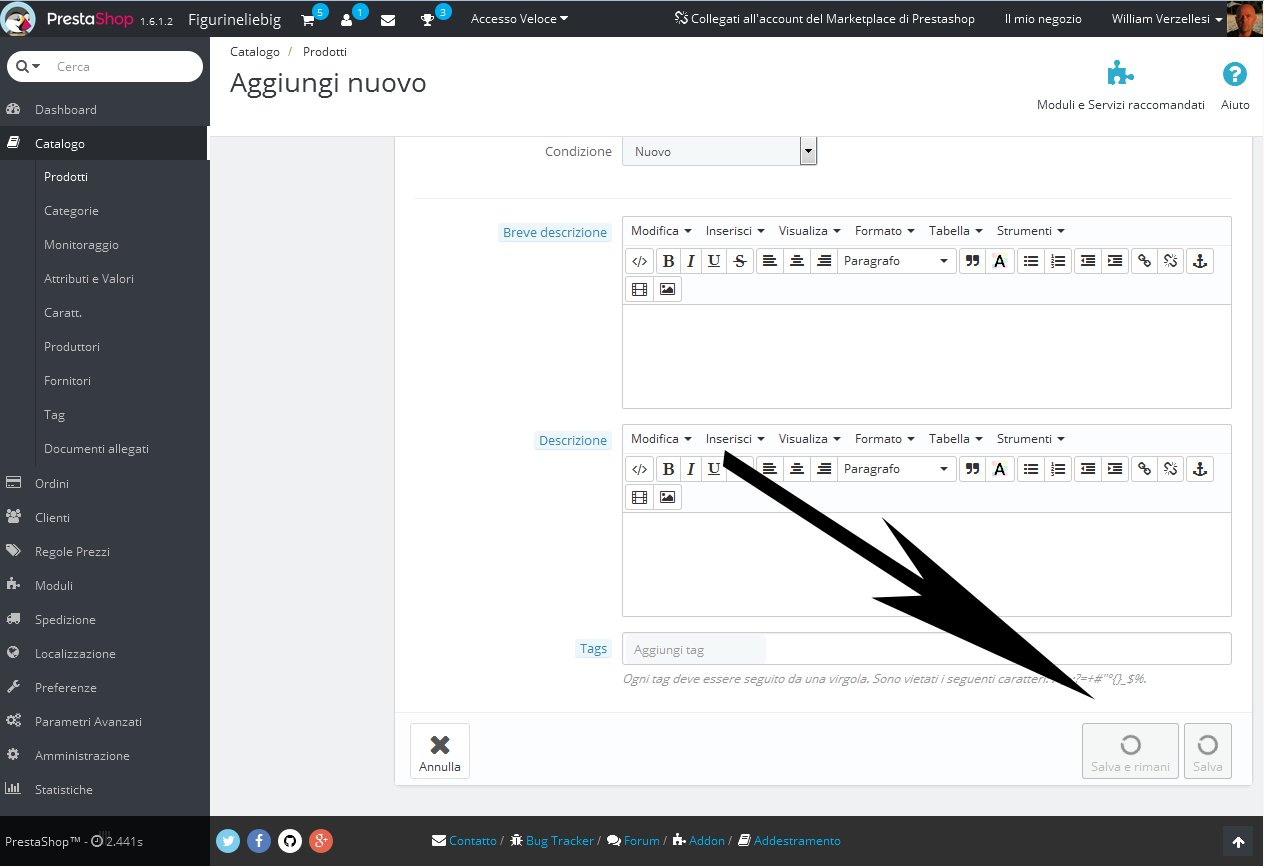 figurineliebig Posted November 13, 2015 Share Posted November 13, 2015 Good afternoon, this is the first time I try Prestashop. I'm not an expert in CMS or PHP, but ... I simply install Prestashop ITA 1.6.1.2 on server with no problems and it seems that everything goes well. But ... with no modifications and nothng else, it is impossible for me to create products or modify preesistent ones! Well, it is not correct: the firt time I copy and install ps I can create my first product. After that everything doesn't work and I cannot push both the "save" buttons at bottom right (look at the screen). There is a sort of round arrow that keeps turning (sorry for english). Please can you help me? I'd like to try and play with PS due to build a new Store of my own outside eBay. Thank you very much for your help :-) Link to comment Share on other sites More sharing options...