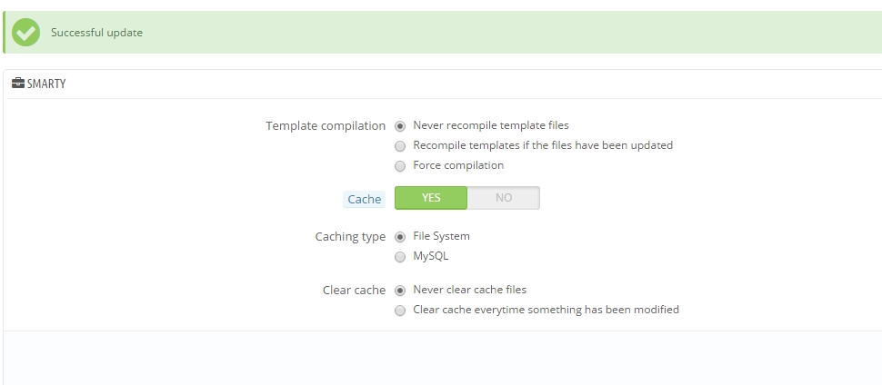 mysterion Posted November 16, 2015 Share Posted November 16, 2015 (edited) When I set the smarty settings to "Never Compile.." or "Recompile if templates have been updated" it stays like this for a while but then, weirdly.. within 24hrs if I go back into the admin I see that smarty has once again defaulted to "Force Compilation" (with resulting slow load times). Any idea what might be causing this - or how I could force/hard-code the setting in place? Many thanks Site: PrestaShop™ 1.6.0.14 Upgraded using One click upgrade. Edited November 16, 2015 by mysterion (see edit history) Link to comment Share on other sites More sharing options...