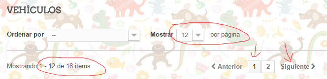 Accedo a la categoría llamada vehículos que tiene 18 productos y se muestra la pagina 1 con 12: