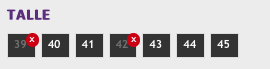 Hola, estoy armando catalogo de zapatillas y para los talles quisiera poner imágenes con los números (35, 36, 37...) y en las que no hay stock salgan esas imágenes tachadas y por supuesto no pueda seleccionarlas, ademas de poder subir un CVS... saben como lo puedo hacer?... dejo una imagen de ejemplo... gracias