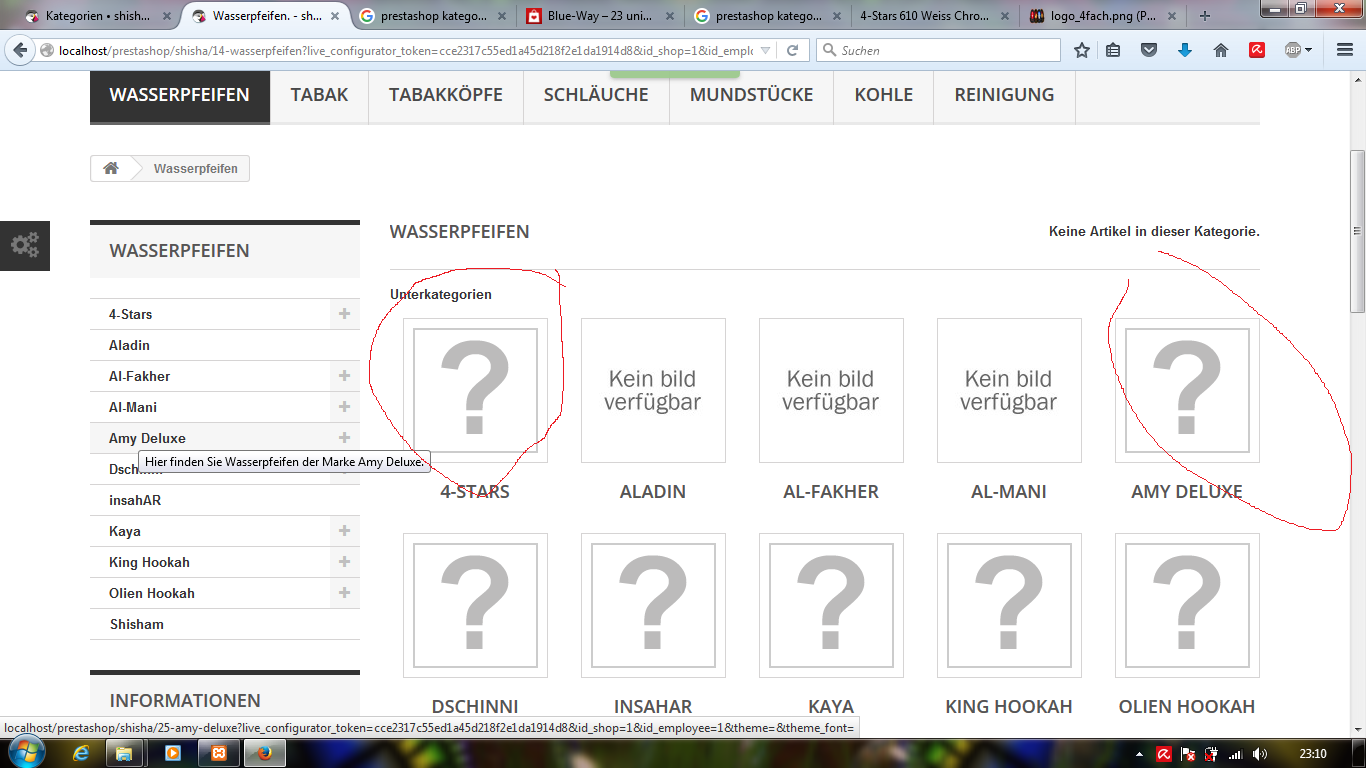 nox93 Posted November 19, 2015 Share Posted November 19, 2015 (edited) Servus Liebes Forum, ich bin relativ neu hier und bin grade dabei in meinem Demoshop so ein paar sachen am auszuprobieren. Eine Sache lässt mich verzweifeln. Ich möchte für die Unterkategorien Bilder hochladen aber alles was mir angezeigt wird ist ein "?".... Ich habe schon einiges versucht. Dasselbe Problem habe ich wenn ich ein Produktbild einfügen möchte.... Im Anhang habe ich mal einen Screenshot gemacht wie das aussieht.... ich würde mich über schnelle Antworten sehr freuend und danke euch für eure Bemühungen.... Man sollte dazu noch wissen ich bin nicht der größte Computerfreak, eher ein laie. Edited November 19, 2015 by nox93 (see edit history) Link to comment Share on other sites More sharing options...