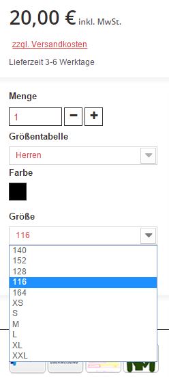 ZoXx Posted November 22, 2015 Share Posted November 22, 2015 Hey, entweder ein Bug oder falsch konfiguriert?Haben die Aufteilung:- Kinder- Damen- HerrenDiese Variante wird als erstes ausgewählt, allerdings kann man im Auswahlfeld unten drunter dann auch die anderen Größen wählen?Produkt ist mit den Varianten im Backend richtig eingepflegt? Link to comment Share on other sites More sharing options...