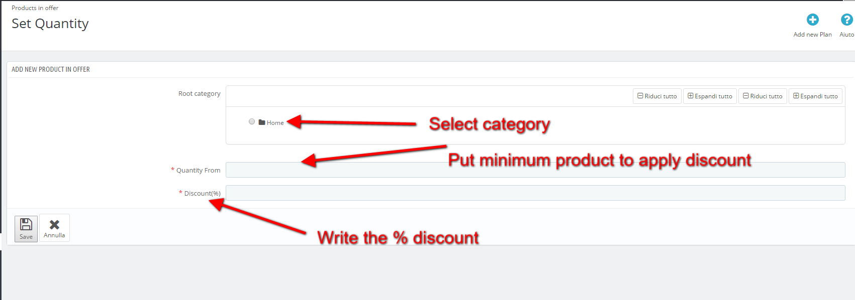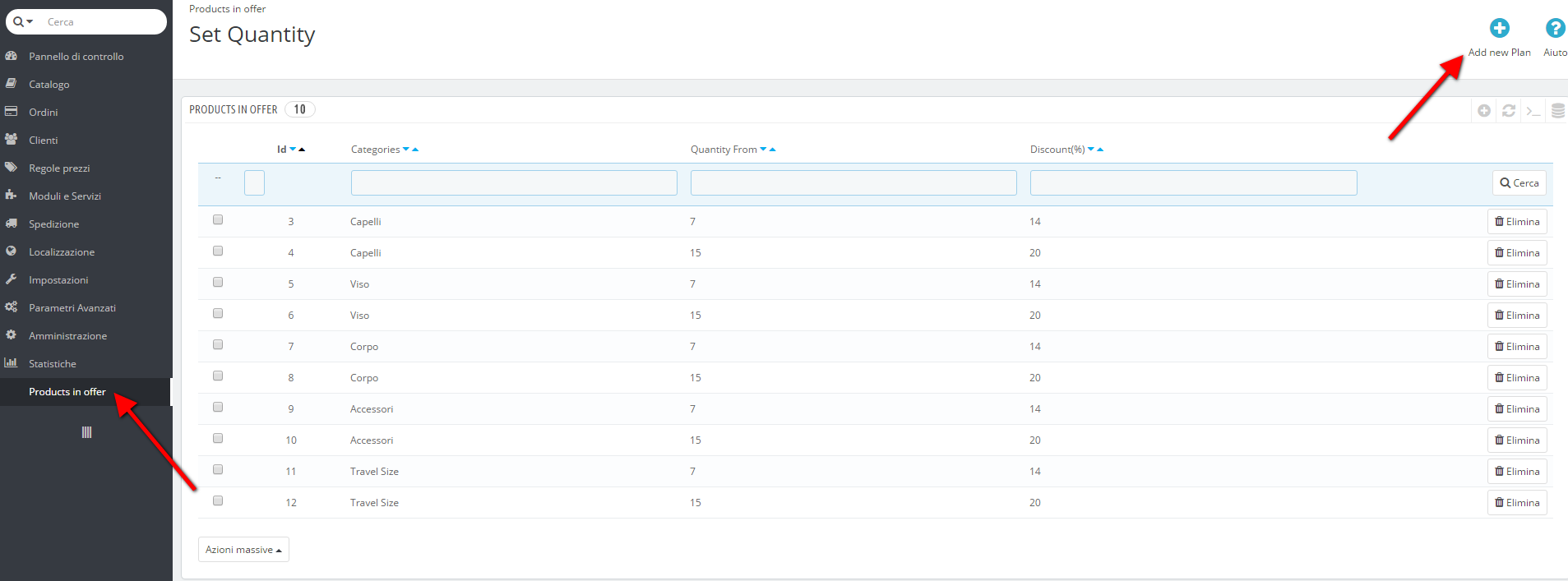 caygri Posted November 22, 2015 Share Posted November 22, 2015 (edited) Discount by Quantity and Category ti permette di fare sconti in base alla quantità del prodotto e per chi ha un sito avviato puoi impostarlo anche in base alle categorie. Dopo installazione, ti apparirà un menu dove puoi selezionare le categorie e in tutti i prodotti usufruiranno automaticamente dello sconto, basta inserire il numero di prodotti per ricevere la percentuale dello sconto desiderato. Ideale per i commercianti di B2B per la formula 6+1 e 12+3 convertita in percentuale. Puoi vedere nella galleria immagine, come è semplice creare lo sconto, la visualizzazione della pagina prodotto e nel carrello. Ottimizzato anche nella fattura. Licenza e Supporto Illimitato COMPRALO SUBITO! Compatibile con Prestashop: 1.6.0 – 1.6.2 Edited November 22, 2015 by caygri (see edit history) Link to comment Share on other sites More sharing options...