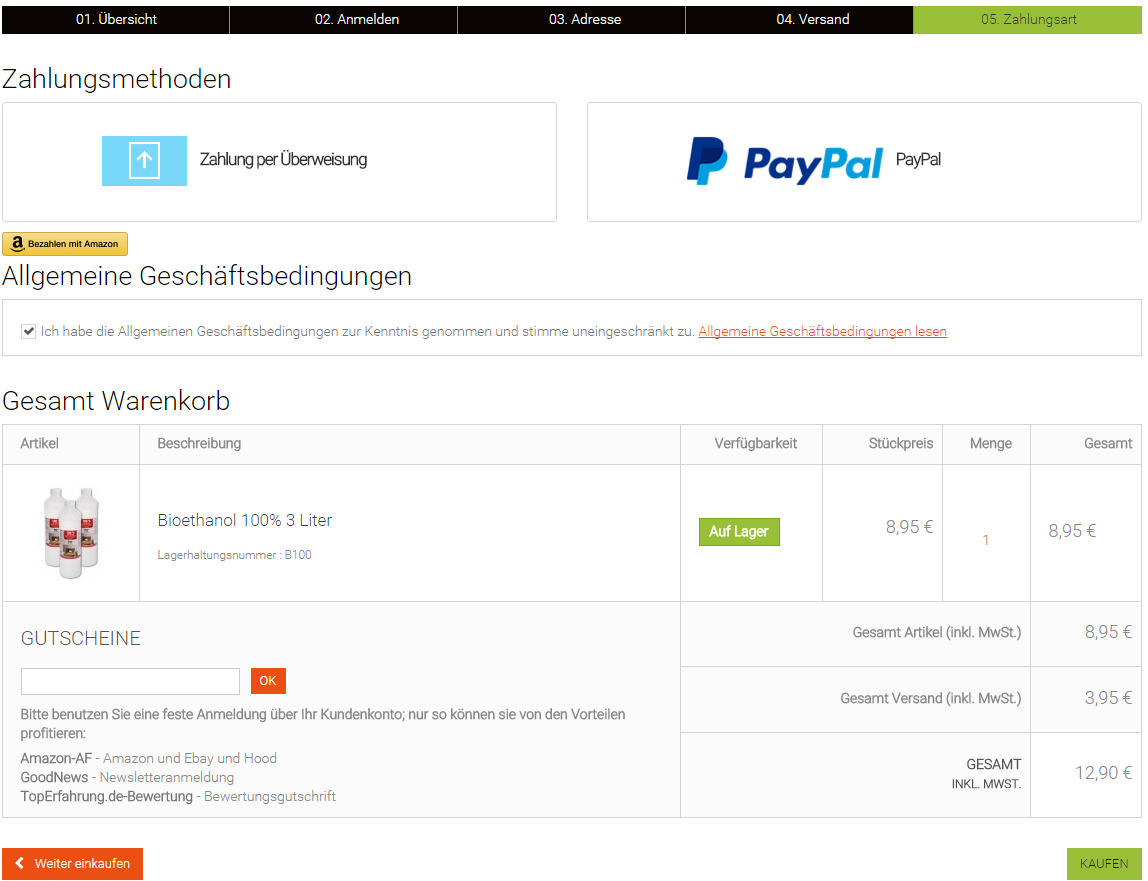 Ich vermute mal, das habe ich bei Dir im Shop noch nicht getestet, dass Du auf der Bestellübersichtseite am Ende des Checkouts das ähnlich gestaltet hast, wie schibulski?