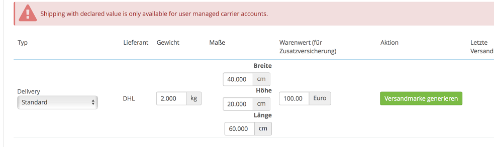 osion Posted November 23, 2015 Share Posted November 23, 2015 Hello I try to create a delivery slip but everytime I get the error shipping with declared value is only available for user managed carrier accounts. I didnt found something about this problem. PrestaShop™ 1.6.0.14 Link to comment Share on other sites More sharing options...