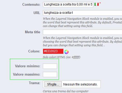 rcondor Posted November 23, 2015 Share Posted November 23, 2015 (edited) SalveHo un problema che sto cercando di risolvere, ma mi piacerebbe avere una dritta. (almeno su quali file considerare.). Aggiungere e gestire valori min e max nella scheda 'Attributi e Valori':Ho necessità di aggiungere i campi min e max per poterli confrontare durante la scelta, nella scheda prodotto, di una riga dell'attributo (come da immagine allegata)Es. negli attributi di un prodotto ci sono 3 valori;00-05 mt=10,00 €06-11 mt=8,00 €12-24 mt=6,00 €Per evitare che il cliente metta 4 mt nella casella della 3° riga (12-24) e compri a 6,00 €, dovro' confrontare i valori min e max specificati nella schermata lato BO. (come da schermata allegata)Non so quali sono i file che leggono e salvano i dati degli attributi e valori lato BO.Ho provato a registrare i valori nel MySQL, ma non li legge (e non li modifica)Naturalmente so che la struttura Attibuti è divisa in 3 parti e sto considerando solo ps_attribute dove c'e' il campo color: id_attribute collegato a [ps_attribute_lang]id_attributeid_attribute_groupcolor---- Aggiunti ----min_valmax_val---- Aggiunti ----position Qualcuno potrebbe darmi una dritta, indicandomi almeno QUALI sono i file dove salva e legge il record di _attribute?Grazie in anticipoRoberto P.S. Esiste un : Hook::exec('actionAttributeSave', array('id_attribute' => $this->id)); in Attribute.php, ma non capisco se 'actionAttributeSave' è una procedura, un modulo,una funzione o altro.... Edited November 23, 2015 by rcondor (see edit history) Link to comment Share on other sites More sharing options...