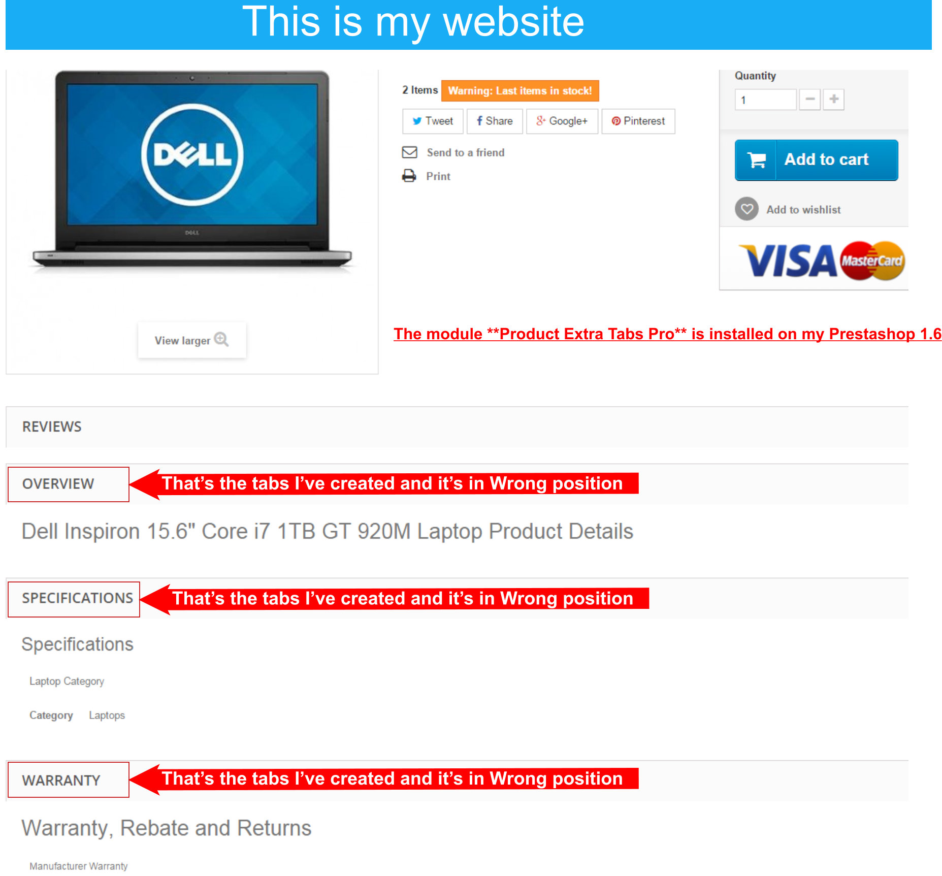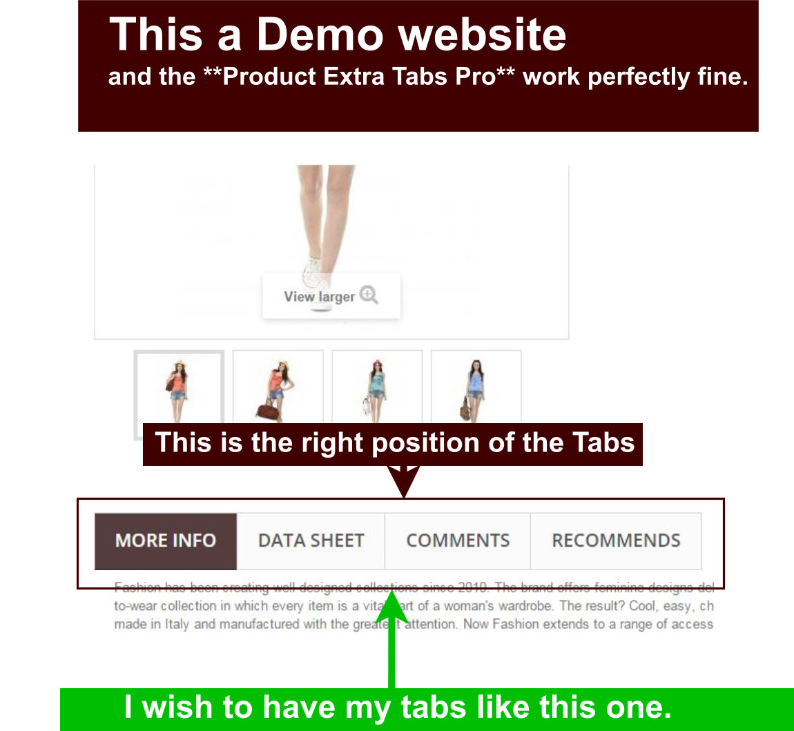 Tasifama Posted November 24, 2015 Share Posted November 24, 2015 I bought **Product Extra Tabs Pro** I'm trying to install **Product Extra Tabs Pro** but it doesn't work at all. I've installed the module **Product Extra Tabs Pro** but I don't see the right way of displaying product tabs in Prestashop 1.6 I know Prestashop 1.6 displays product tabs as a wide horizontal bars these wide bards in fact aren't a real tabs I will appreciate any advise to solve this issue. Thanks Link to comment Share on other sites More sharing options...