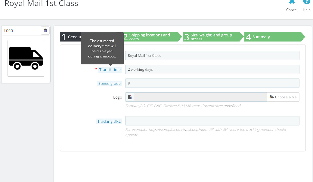 transit time on carrier page reads '2 working days', on product page says '3-7 days'. speed grade '9'