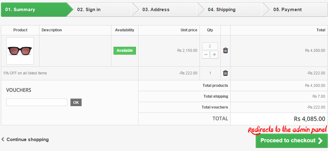Good Boy Posted November 29, 2015 Share Posted November 29, 2015 I have enabled standard five steps checkout process for my prestashop ecommerce website but when I click on "Proceed to Checkout" button at the bottom of the Shopping cart summary page, it redirects me to the admin panel. I tried by signing out of my admin panel as well but still no joy. I want it to give an option of Register or Guest Checkout where buyer can enter his details. Can someone help me please? Link to comment Share on other sites More sharing options...