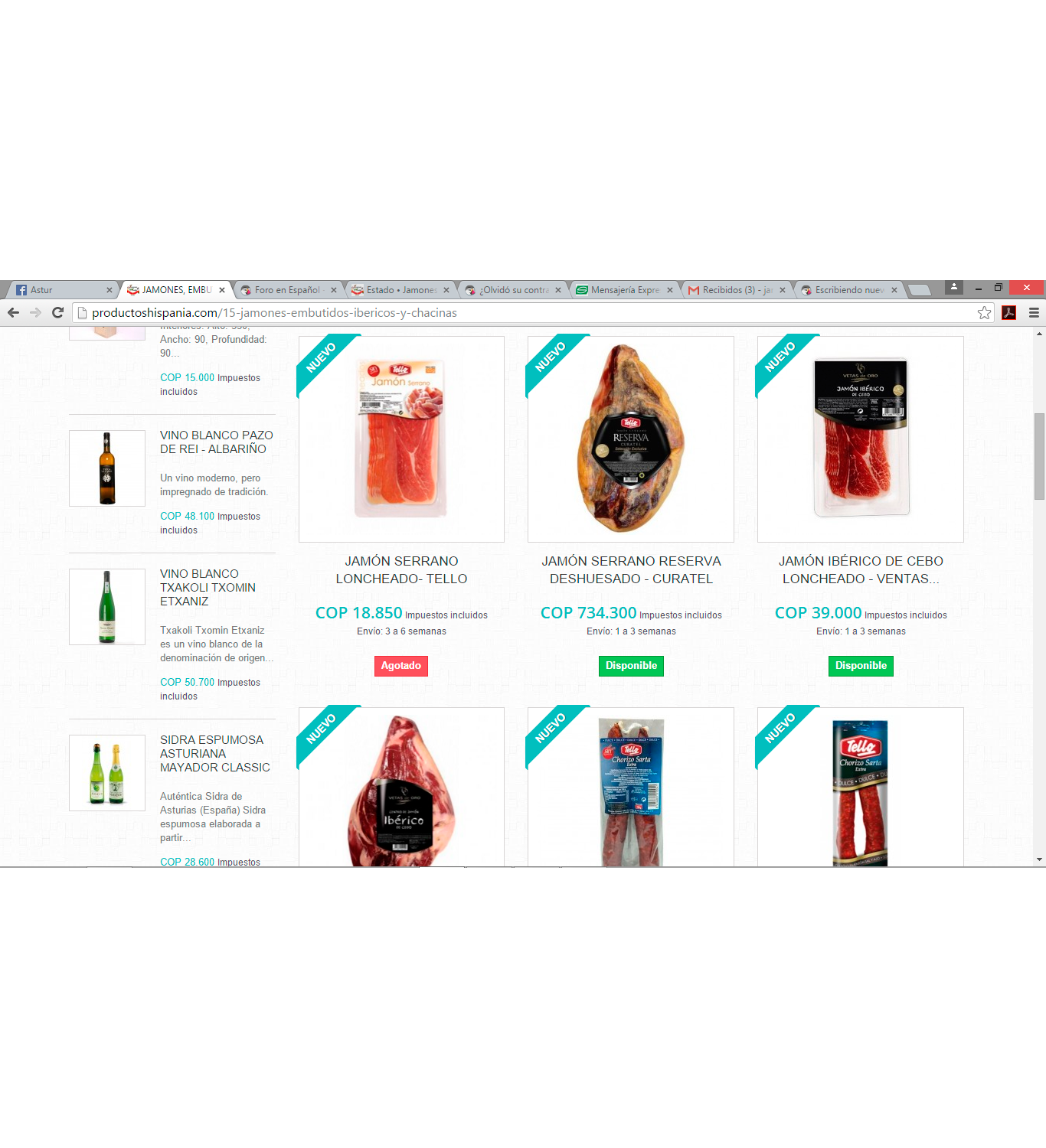 Os adjunto una captura de pantalla. También la dirección web www.productoshispania.com