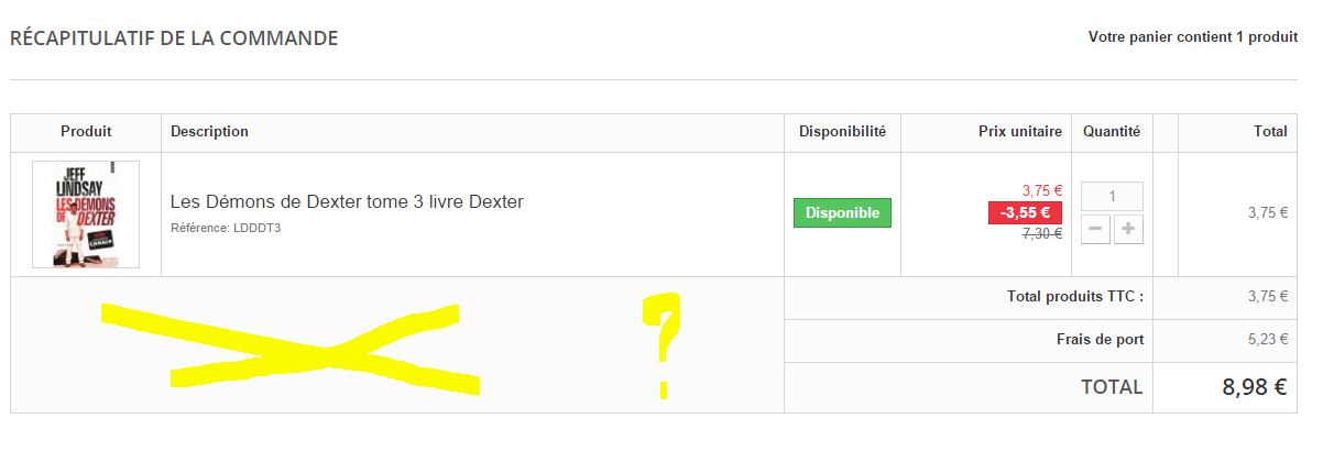 Quand je me trouve dans le panier apres avoir cliqué sur commander je n'est pas l'encart bon de réduction qui s'affiche (alors en faite oui et non quand j'actualise ma page on le voie 1 seconde et il repart)