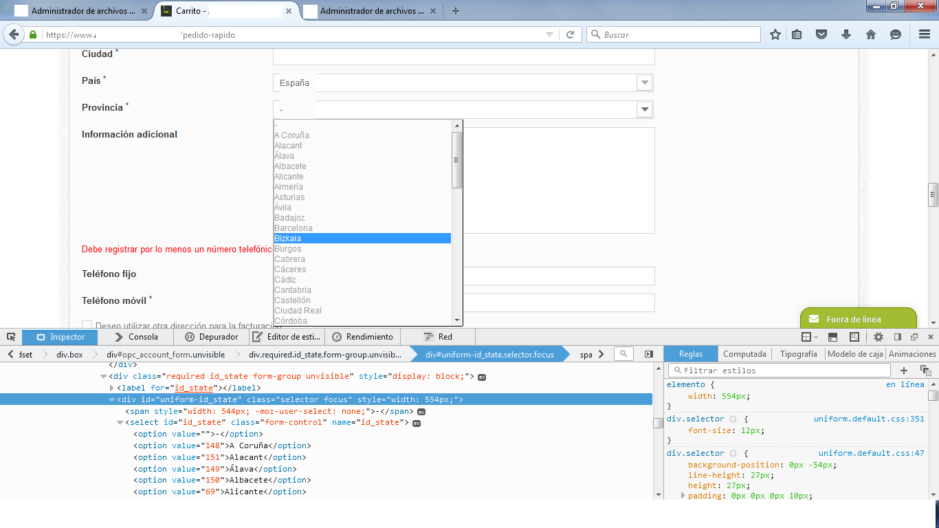 El campo de registro al seleccionar el país o la provincia quisiera acortarlos para que se quedara igual que en la selección.
