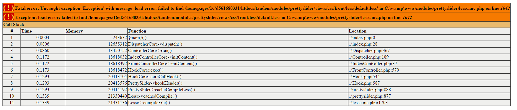julien41 Posted December 9, 2015 Author Share Posted December 9, 2015 Voici le message en question : Fatal error: Uncaught exception 'Exception' with message 'load error: failed to find /homepages/16/d561680331/htdocs/tandem/modules/prestacreathememanager/theme/less/theme-global.less' in C:\wamp\www\modules\prestacreathememanager\lessc.inc.php on line 1642 Exception: load error: failed to find /homepages/16/d561680331/htdocs/tandem/modules/prestacreathememanager/theme/less/theme-global.less in C:\wamp\www\modules\prestacreathememanager\lessc.inc.php on line 1642 Link to comment Share on other sites More sharing options...