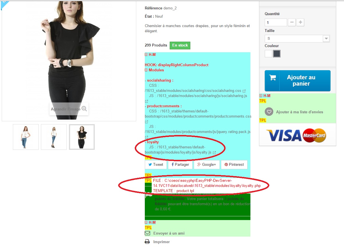 coeos.pro Posted December 11, 2015 Share Posted December 11, 2015 Comme vous pouvez le voir sur cette image le module loyalty est greffé sur le hook displayRightColumnProduct : un fichier js est appelé (themes/default-bootstrap/js/modules/loyalty/js/loyalty.js) et concernant le TPL , le fichier PHP qui l'appelle est modules\loyalty\loyalty.php, et le template product.tpl (ATTENTION : c'est themes/default-bootstrap/modules/loyalty/views/templates/hook/product.tpl et non pas themes/default-bootstrap/product.tpl) Je ferai une maj du module http://www.coeos.pro/fr/modules-prestashop/116-quel-est-ce-module-quel-est-ce-hook.html cet après midi pour afficher l'url complète du template, ça évitera les confusions. Link to comment Share on other sites More sharing options...