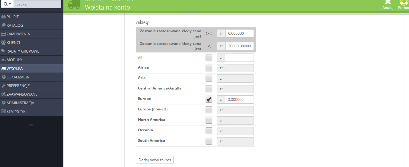 0 Remigiusz Posted December 12, 2015 Author Share Posted December 12, 2015 Czyli tutaj przy europie mam wpisać koszt dostawy np 20zł? Link to comment Share on other sites More sharing options...