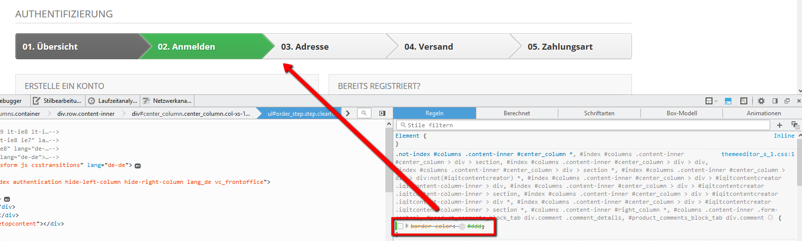 dusticelli Posted December 11, 2015 Author Share Posted December 11, 2015 habs hinbekomnen: .not-index #columns .content-inner #center_column #order_step > li { border-color: transparent;} ... Link to comment Share on other sites More sharing options...
