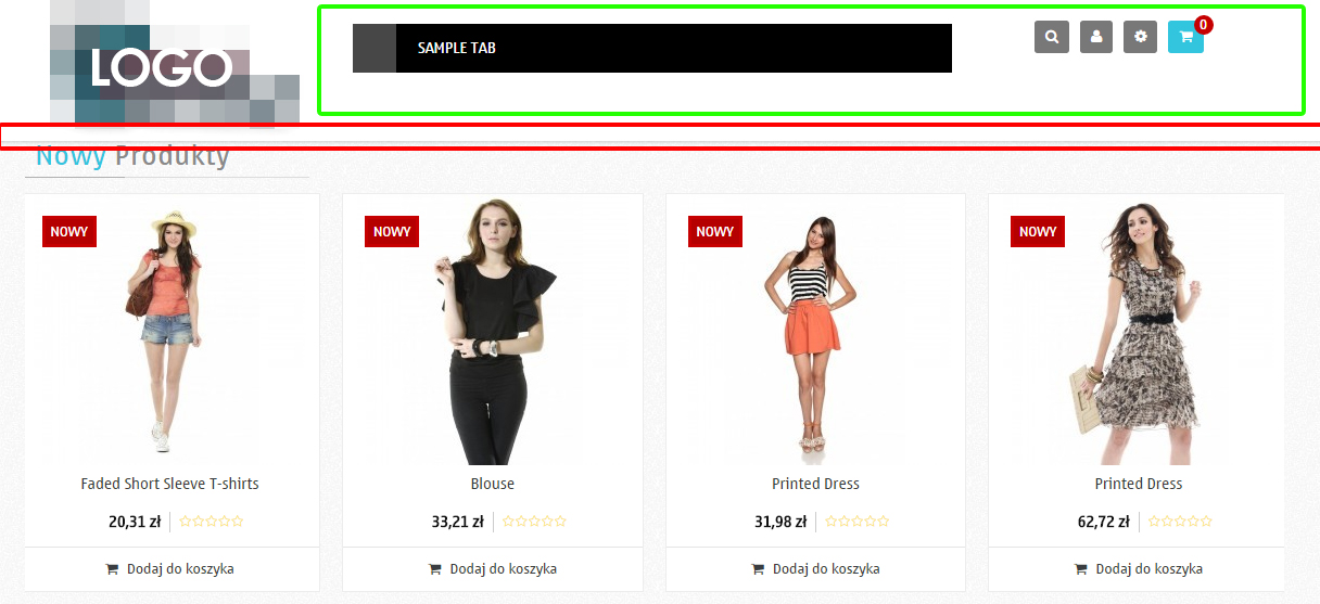 Kolorem czerwonym oznaczyłem miejsce gdzie chciałbym umieścić menu. (pod logo, nad treściami)