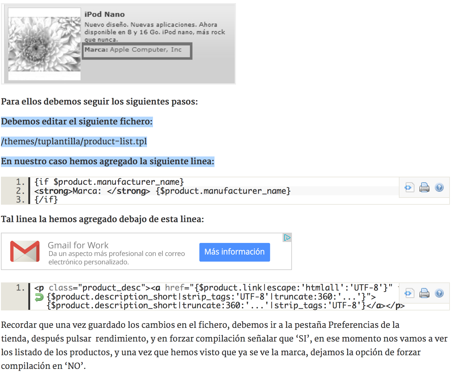 Buenos dias, Primero que nada espero estar posteando de forma correcta. Les comento que he buscado en el foro, pero no he podido dar con la respuesta. Tengo una tienda con prest 1.6.1.3 y me gustaria mostrar en la pagina de resultados de categoria la marca en texto de cada producto. Supongo que para personalizar esto no hay modulo (no quiero poner la imagen, solo texto) y si lo hubiera diganme cual.