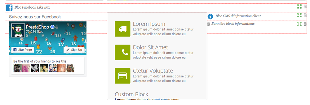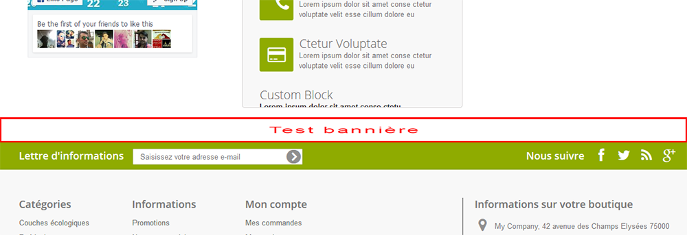 zblteam Posted December 16, 2015 Share Posted December 16, 2015 Bonjour à tous, j'aurai voulu avoir un peu d'aide ou avis sur la question. Je souhaiterai intégrer une bannière sur toute la largeur du site en dessous du block cms/facebook dans le meme principe que la banner top (voir test-banner.png) Pour se faire j'ai duppliquer le dit module (bloc banner) et fait les modifications nécessaire pour éviter les conflits entre eux et le greffer ou je veux (Home) (voir modules.png) L'installation se fait sans soucis, je vois dans le Live Edit le module greffé dans Home (Bannière block informations) mais je ne le vois pas sur la page (voir modulegreffé.png). A part avoir changer les infos de function __construct et $this->registerHook('displayHome') , je n'ai touché a rien d'autre car je voudrais garder la souplesse du module de base : Upload image, d'escription, lien hypertex Que me manque-t-il ? ps: le fichier de base est blockbanner.php Link to comment Share on other sites More sharing options...