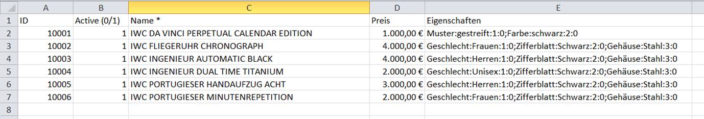 admin-andy Posted December 19, 2015 Share Posted December 19, 2015 Hallo Ihr Lieben,meine CSV sieht - in Bezug auf die Eigenschaften - wie folgt aus (siehe Bild)Ich habe 8 verschiedene Eigenschaften und diese trennt mein LibreCalc mit den "#" als Trenner. Die CSV ist dann entsprechend und beim Import stelle ich den Feldtrenner auf ";" und Texttrenner "#"Klappt wunderbar Link to comment Share on other sites More sharing options...
