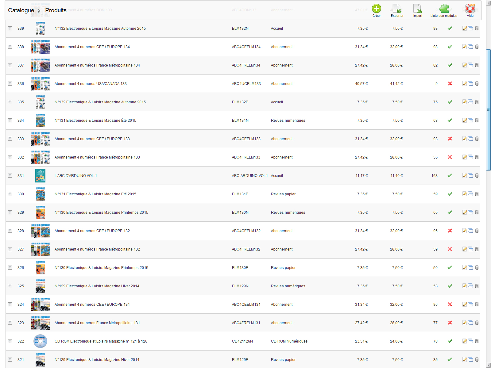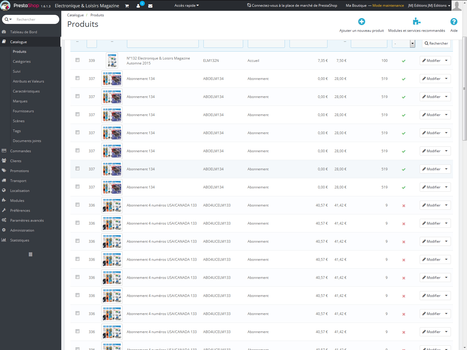 jarodurand Posted December 20, 2015 Share Posted December 20, 2015 Bonjour à toute la communauté et je vous remercie par avance pour toute réponse qui pourra m’aider dans mon problème. Je dispose actuellement d’une boutique en Prestashop 1.5.4.1 qui fonctionne très bien. Je veux mettre à jour la version Prestashop 1.6.1.3, donc j’ai fait des tests sur un serveur de test. Lorsque j’effectue la mise à jour tout se passe bien sauf le thème qu’il faut adapter mais cela n’est pas un problème. Par contre lorsque j’ouvre la page produit dans le back office, plusieurs produits apparaissent plusieurs fois avec la même identité dans le back office. Si j’en supprime un tous les mêmes produits disparaissent. Dans le front office tout est normal, par exemple le produit Abonnement 134 apparaît une fois, de même pour les autres. Après des recherches j’en ai déduis que les produits qui apparaissent plusieurs fois dans le back office sont des produits qui ont été dupliqués lors de leur création dans la version 1.5.4.1. Mais je n’ai pas trouvé de solution. À noter que si je crée un produit dans la version 1.6.1.3 tout est normal, il apparaît une seule fois dans le b.o. J’ai aussi essayé de mettre à jour à partir de la version 1.5.6.3 vers la 1.6.1.3 même j’ai le même problème. Ci-joint les images pour comprendre le phénomène. En vous remerciant et en vous souhaitant de bonnes fêtes. Link to comment Share on other sites More sharing options...