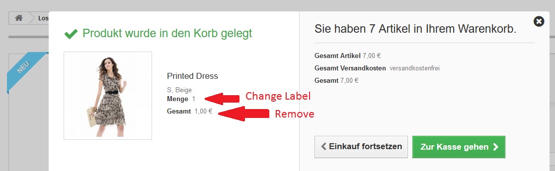 helge577 Posted December 23, 2015 Author Share Posted December 23, 2015 (edited) Thanks razaro, this is a nice module. Unfortunately, the elements (simple label "quantity" or in German "Menge") I'm looking for are not within another module. I've tried to search all files for the label string "quantity" but I've found to many. Furthermore, the cart-popup doesn't open anymore since I've installed the "What is this Module" module. In order to learn how templates work, I've changed the label line in: /themes/default-bootstrap/product.tpl - file <div class="product_attributes clearfix"> <!-- quantity wanted --> {if !$PS_CATALOG_MODE} <p id="quantity_wanted_p"{if (!$allow_oosp && $product->quantity <= 0) || !$product->available_for_order || $PS_CATALOG_MODE} style="display: none;"{/if}> <label for="quantity_wanted">{l s='SOMETHING DIFFERENT'}</label> But there are no differences on my shop. Does I have to reload the theme somehow? Edited December 23, 2015 by helge577 (see edit history) Link to comment Share on other sites More sharing options...