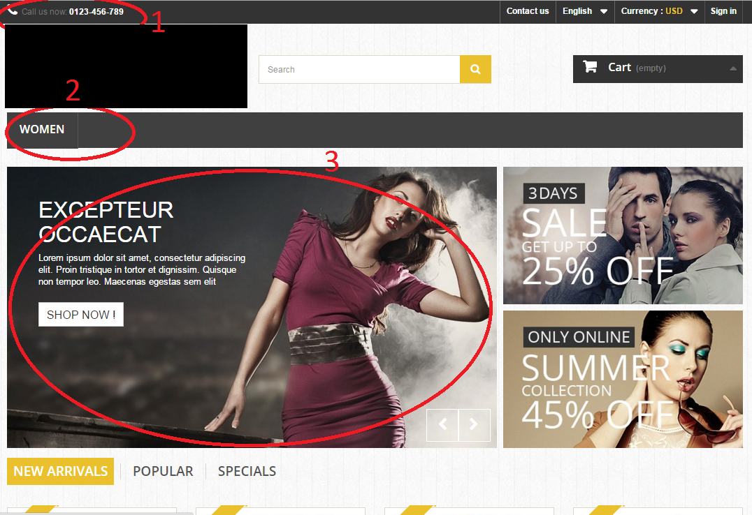 Pretoshop'u Cloud üzerinde kullanıyorum. Üç bölümün düzenleneceği kısmı panelde bulamıyorum. Yardımınıza ihtiyacım var. Ekte ana sayfada düzenlemekte sıkıntı yaşadığım bölümleri numaralandırdım.