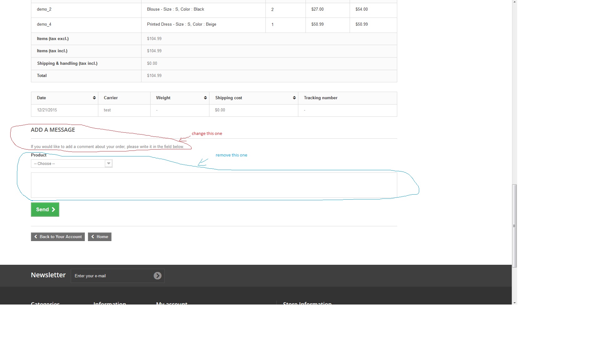 jonwreck Posted December 28, 2015 Share Posted December 28, 2015 HI I try remove this info "If you would like to add a comment about your order, please write it in the field below." and text area below on checkout page, but i can't also i want to do the same thing on customer account in order history i try do this in theme catalog in file: order-detail.tpl and order-carrier.tpl but nothing happend i clear cache, recompile file after checnge tpl , clear cooskies in web browseer and still the same Link to comment Share on other sites More sharing options...