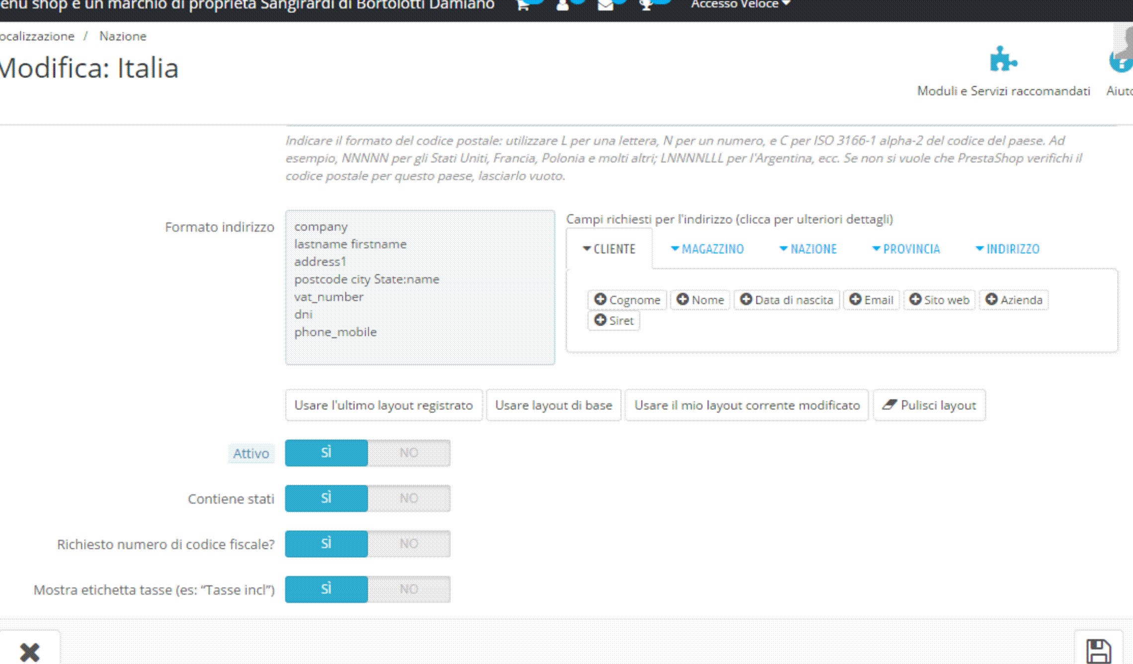 Giorgio M. Posted January 1, 2016 Share Posted January 1, 2016 Devi andare in localizzazione -> nazione scegli l'italia e nel campo compilabile aggiungi vat_number dove preferisci. Tieni presente che le fatture già emesse non verranno corrette, dovrai farlo a mano dal db Link to comment Share on other sites More sharing options...