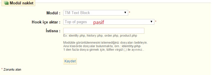 Şahin YILDIZ Posted January 2, 2016 Share Posted January 2, 2016 Bir çok modülde bu durum vardır istediğiniz her pozisyonda kullanamazsınız, tüm hooklar da yani pozisyonlar da çalışan modül kullanmalısınız aşağıdaki modül gibi yada çalışmasını istediğiniz hook alanını kaynak kodlarına eklemelisiniz. http://addons.prestashop.com/en/front-office-features-prestashop-modules/2766-text-block-v2.html Link to comment Share on other sites More sharing options...