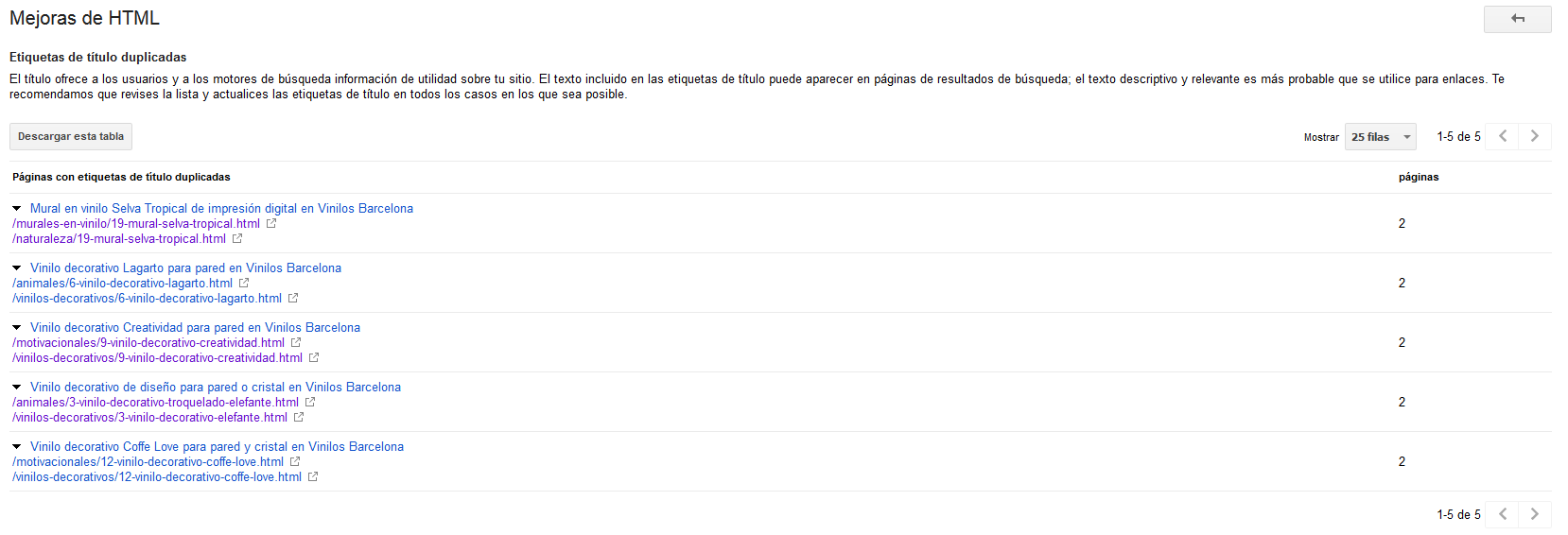 Ivanmarga Posted January 10, 2016 Share Posted January 10, 2016 (edited) Hola, os escribo porque no encuentro solución a las metadescripciones duplicadas que aparecen en Search console, he probado alguna cosas que salen por Internet. Pero no me ha funcionado nada. Las metadescripciones y títulos duplicadas aparecen por que me duplica las categorías, es decir. Yo los productos los añado a la categoría inicio, luego a su subcategoria y producto. Y esto me lo toma como dos productos. Espero haberme explicado, adjuntos unas imágenes para que lo veáis. Gracias, un saludo Edited January 11, 2016 by Ivanmarga (see edit history) Link to comment Share on other sites More sharing options...