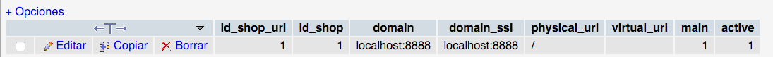 buhoc Posted January 10, 2016 Share Posted January 10, 2016 Hola smalnero, Pueden ser varias cosas: -Entra al admin del prestashop y ve a Seo Url y desactiva las urls amigables, y vuelve a cargar el index. -Asegúrate que en la base de datos, la tabla, ps_shop_url este así: Con esto debería verse el front. Link to comment Share on other sites More sharing options...