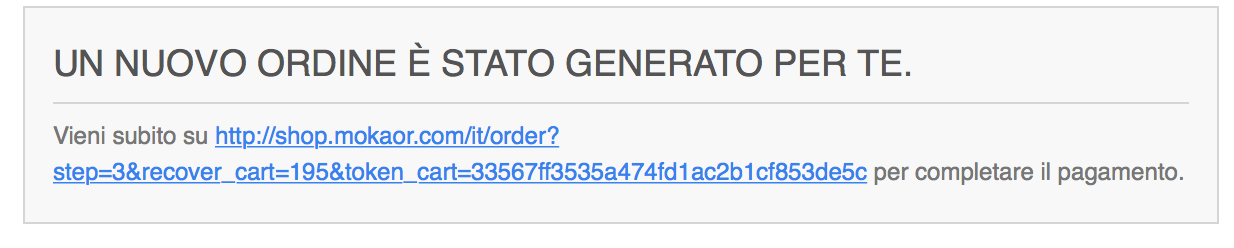quando creo un ordine dal backoffice se clicco sul pulsante invia un email al cliente con il link per effettuare il pagamento mi manda correttamente l'email come da immagine qua sotto: